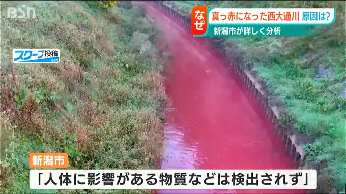 新潟市南区の川の水が「赤く染まった」という現象について、新潟市が調査していましたが、原因はいまだ謎のままです。