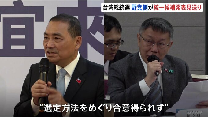 台湾・野党側が総統選統一候補の発表を一転して見送りです。来年1月の台湾総統選で与党・民進党に対抗する野党側は、きょう予定していた統一候補の発表を見送りました。中国に融和的な最大野党・国民党の侯友宜氏…