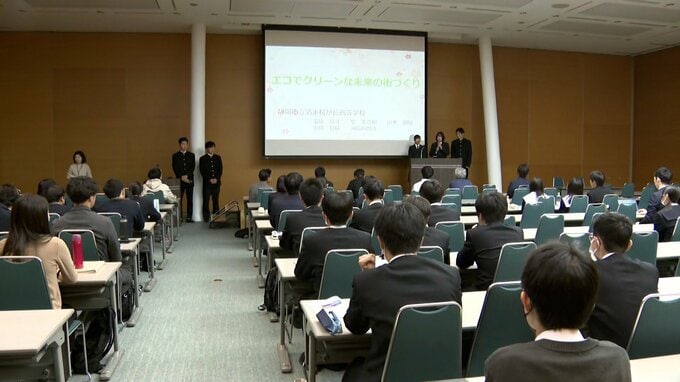 このイベントは静岡鉄道が脱炭素社会への意識を高め、環境問題を「自分事ごと」として考えてもらおうと開催したものです。11月18日、静岡市内6校の中学生と高校生およそ30人が「カーボンニュートラル」の実現に向けた取り組みを発表しました。