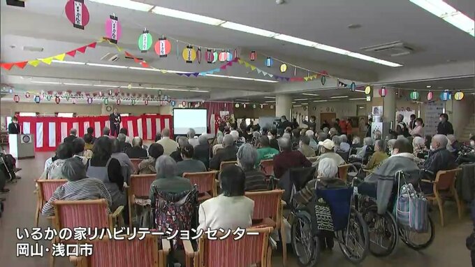 浅口市の介護老人保健施設「いるかの家リハビリテーションセンター」で、創立25周年を祝う式典が開かれ、