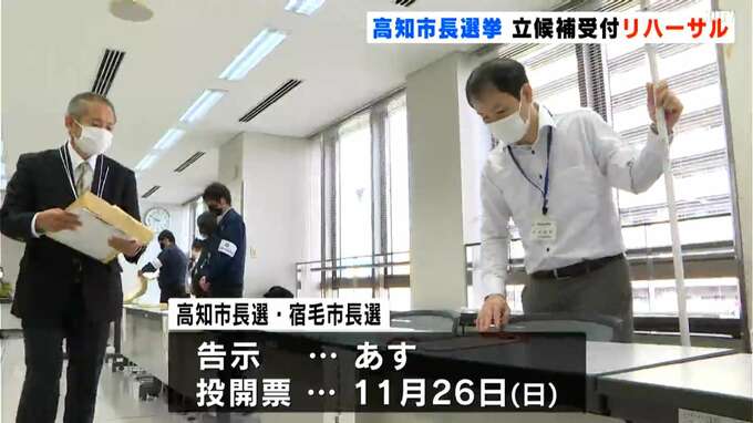 19日、高知市長選挙が告示されるのを前に高知市で、立候補受付のリハーサルが行われました。高知市長選挙の立候補者の受付は19日午前8時半から高知市役所たかじょう庁舎で始まります。これを前に高知市選挙管理委…