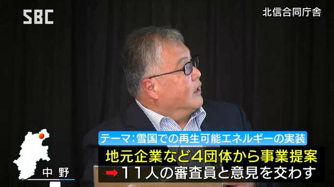長野県北信地域振興局では18日に査会が開かれ、「雪国での再生可能エネルギーの実装」をテーマに事業を提案した地元企業など4団体が、11人の審査員と意見を交わしました。