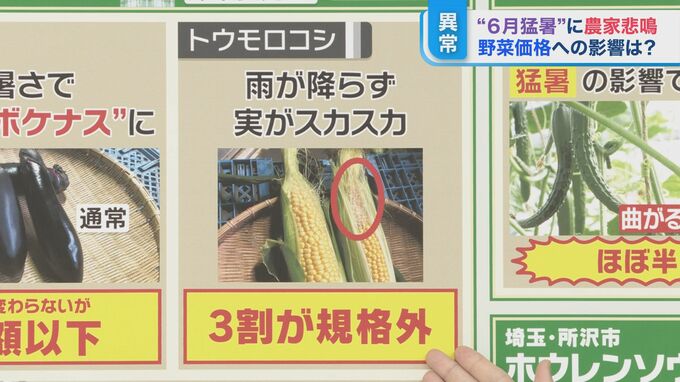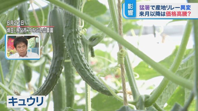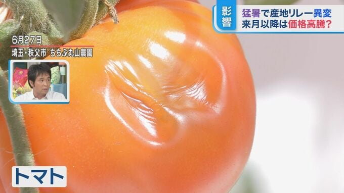 秩父市は、6月30日午前10時時点で最高気温34.7度。丸山さんによりますと、ここ数日で1日約15キロのキュウリやトマトが廃棄になっているということです。