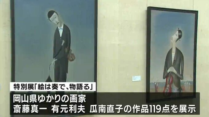 倉敷市立美術館で開催されている特別展「絵は奏で、物語る」には、岡山県ゆかりの画家・斎藤真一、有元利夫、瓜南直子、3人の作品119点が並びます。