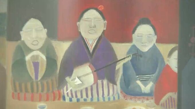 見ている人を深い物語の中に誘うような神秘的な作品や、盲目の旅芸人「瞽女(ごぜ)」を描き、今にも哀愁に満ちた音色が聴こえてきそうな一枚など、豊かな世界観を持った絵画が一堂に会しています。