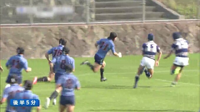 後半に入っても倉敷の勢いは止まりません。2年生の森岡が自慢の俊足を飛ばして2トライを決めるなど45対0と玉島を圧倒。
