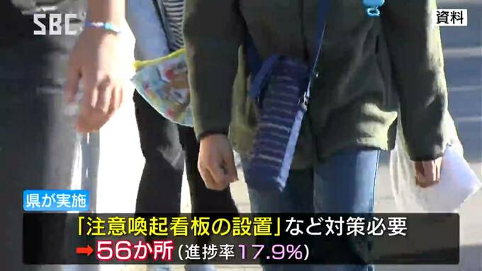 このうち、県が行う「注意喚起看板の設置」などが必要な場所は56か所で、年度末までに17.9%で対策が取られました。
