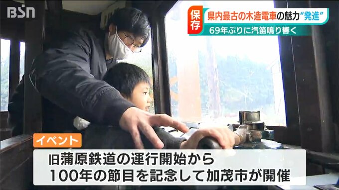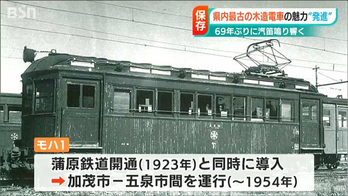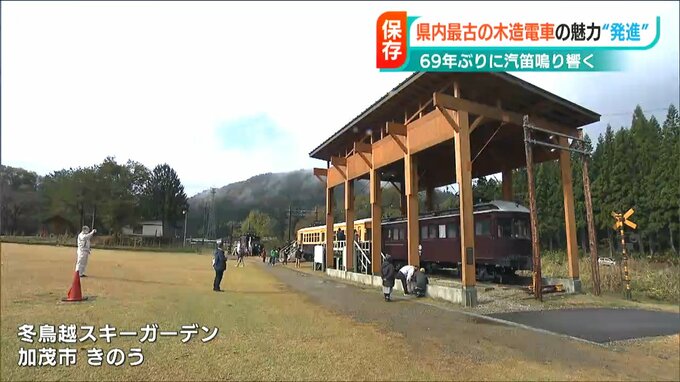実に69年ぶりの響きです。かつて新潟県 加茂市と五泉市との間を行き来した新潟県内最古の木造電車『モハ1』の汽笛を鳴らすイベントが19日開かれ、参加した人たちは歴史が感じられる音を楽しんでいました。