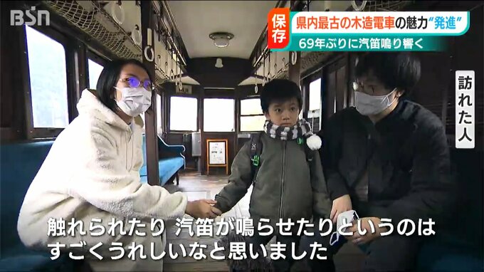 【訪れた人は】「子どもが全然(蒲原鉄道に)触れてこなかったけれども、こういう風に保管してあって触れられたり汽笛を鳴らせたりというのはすごくうれしいなと思いました」