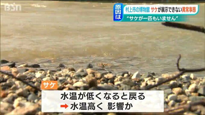 サケは水温が低くなってくると戻ってくるということで、今年の猛暑によって水温が高い状態のため戻ってこられないのではという見方があります。