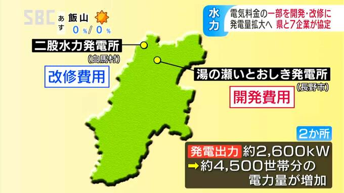 第2弾の今回は八十二銀行やキッセイ薬品など新たに5つの企業が加わり、電気料金の一部が県内2か所の水力発電所の改修、開発に充てられることになりました。
