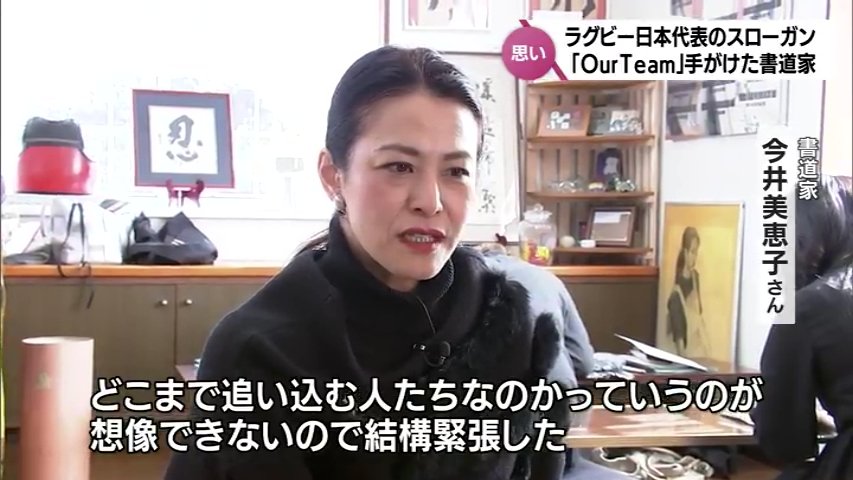 今井さんの書は、今年、ラグビー日本代表の選手たちも奮い立たせました。