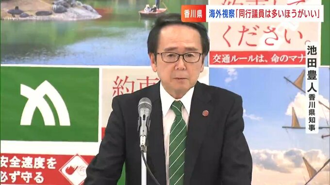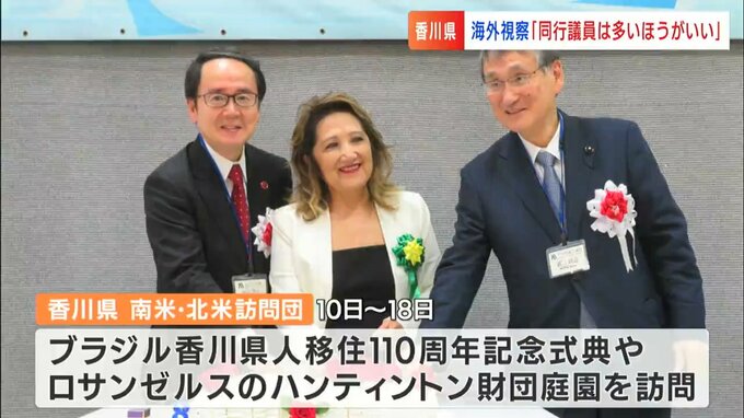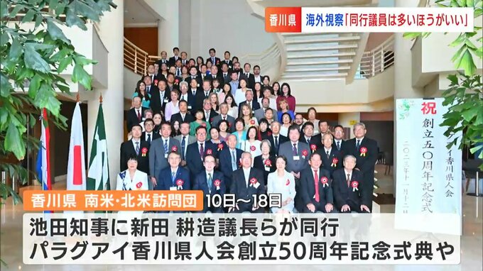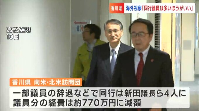 今月(11月)10日から南米などを訪問していた香川県の池田知事が帰国し、きょう(20日)会見を開きました。同行した県議会議長も取材に応じ、同行する議員の数は多いほうがよいという考えを示しました。