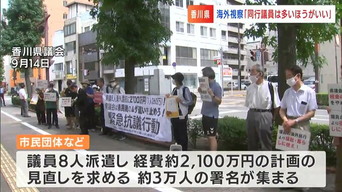 一方で海外訪問団派遣をめぐっては、当初は同行する8人の議員だけで経費が2100万円以上かかる計画だったことから、県民から見直しを求める声が上がっていました。