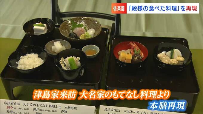 江戸時代、池田家藩主の憩いの場として利用された岡山市北区の後楽園。その後楽園で当時殿様が食べたとされる料理の再現レシピが完成し、関係者に向けた試食会が開かれました。