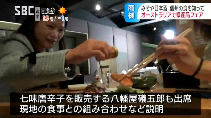 みそや日本酒など信州の味覚を海外にPRしようと、オーストラリアで県産品フェアが開かれました。