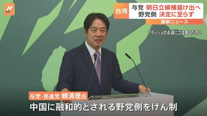 台湾総統選は立候補の受付がきょう始まりました。与党・民進党の頼清徳氏はさきほど副総統候補を発表し「民主主義か親中路線の選択だ」と強調しました。民進党 頼清徳主席「台湾が民主主義への道で前進し続け成長…