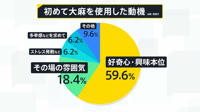初めて大麻を使った動機で多いのは「好奇心・興味本位」ですけれども、その次に多いのは「その場の雰囲気」です。