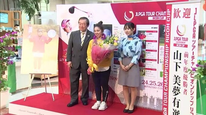 23日、宮崎市で開幕するゴルフのリコーカップを前に、去年の大会を制したディフェンディングチャンピオンの山下美夢有選手が、21日朝、宮崎入りしました。21日午前9時に空路宮崎入りしたのは、女子プロゴルフの山…
