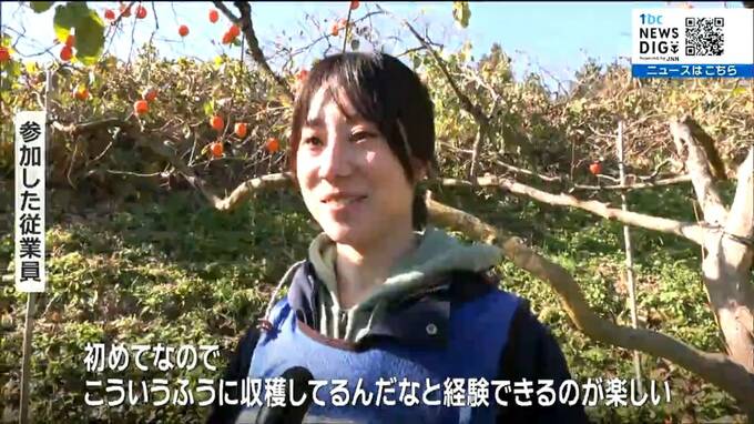 生産者の思いや苦労を理解し店頭での販売にいかします。大手スーパーの従業員たちが宮城県丸森町特産の「ころ柿」作りにむけ、柿の収穫を手伝いました。
