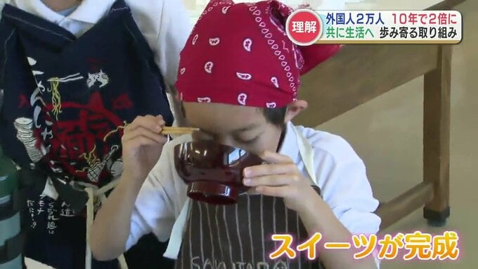 こちらは大津町の小学校。放課後に台湾のスイーツを作っていました。