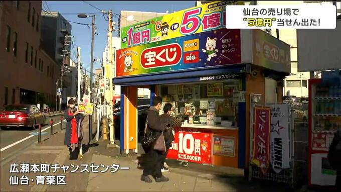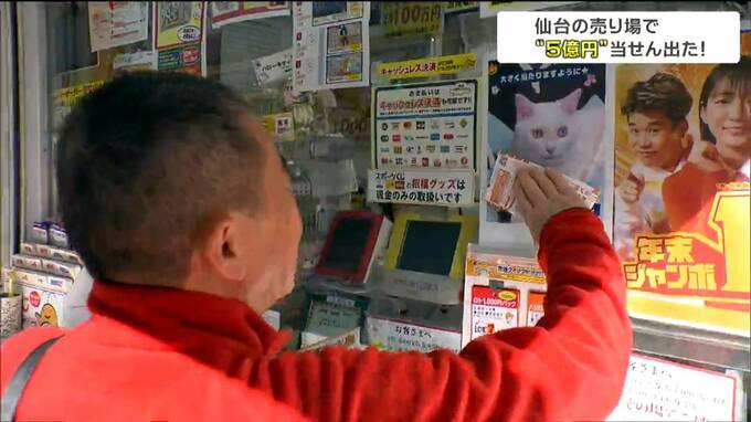 1等・前後賞あわせて10億円があたる年末ジャンボ宝くじの販売が21日から全国一斉に始まりました。仙台市内の売り場では、10月のハロウィンジャンボで5億円の当選が出ていて、縁起の良さにあやかろうとくじを買い求める人の姿が見られました。