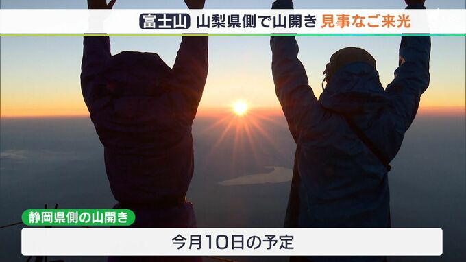 <山崎加奈アナウンサー>「山梨県側の吉田ルートで、きょう富士山の山開きとなりました。富士山はすっかり雪解けとなっていますけれども、きょうは白い雲に覆われています。この暑さですので、富士山も雲で日陰を…