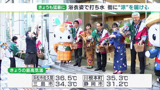静岡県内は、7月1日も気温が上がり、山沿いを中心に35℃を超える猛暑日となりました。静岡市では、信用金庫の職員が浴衣姿で打ち水をし、街に涼しさを届けました。じりじりとした日差しの中、静岡市の信用金庫では…