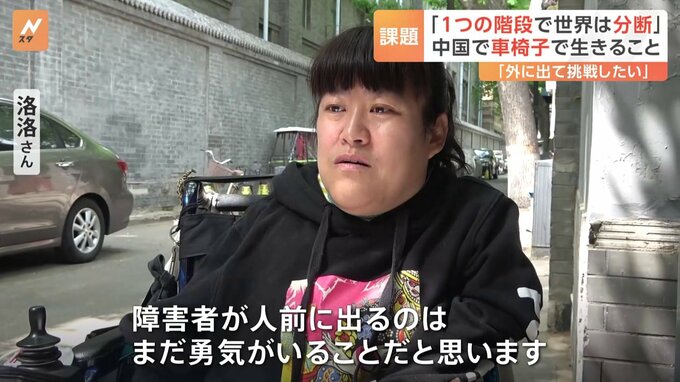 中国では14億の人口の6%およそ8500万人の障害者が生活しているとされますが、社会参加が課題です。挑戦を続ける車いすの女性を取材しました。北京で暮らす洛洛さん(37)。彼女が見た北京の街は、こんな感じ。洛洛…