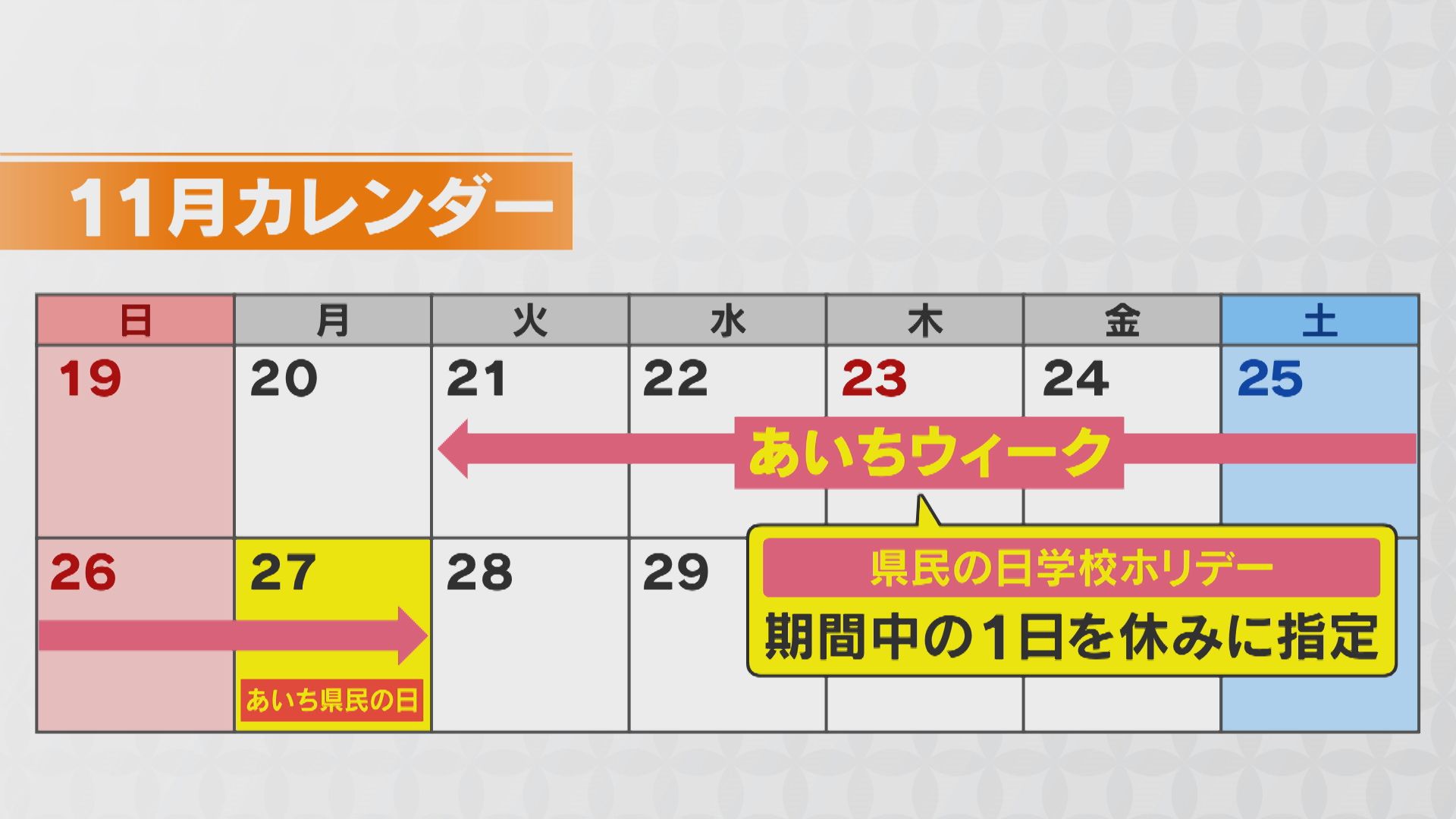 11月27日は151年前に今の愛知県が誕生した日で、この日までの一週間を「あいちウィーク」とし、県内の学校などがこの期間中の平日1日を休みに指定する「県民の日学校ホリデー」も初めて実施されます。