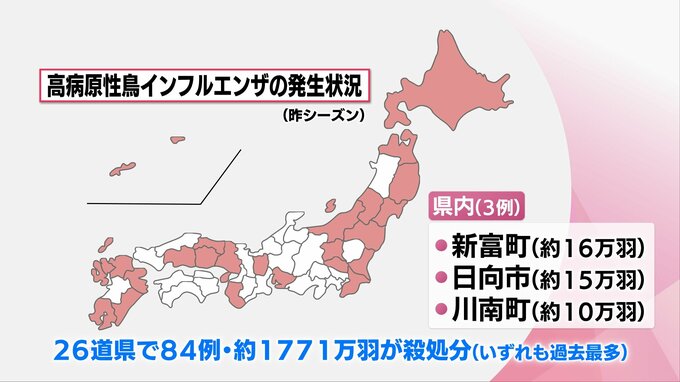 宮崎県内でも新富町、日向市、川南町の養鶏場で鳥インフルエンザが発生し、あわせておよそ41万羽が殺処分されました。