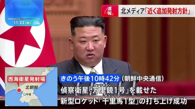 北朝鮮の国営メディアは「近いうちに複数の偵察衛星を追加で発射する」方針だと伝えています。ソウルから中継です。北朝鮮国営の朝鮮中央通信は、衛星の打ち上げに金正恩総書記が現地で立ち会ったと伝えています。…