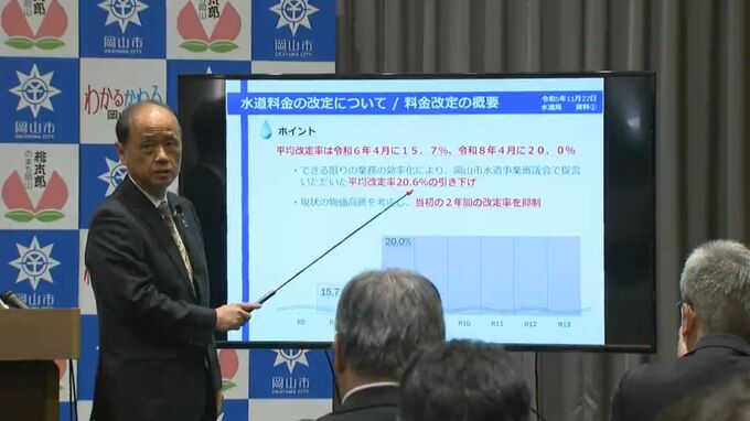 岡山市は水道料金を来年4月から平均で15.7%値上げする条例改正案を、11月定例市議会に提出することを明らかにしました。(大森雅夫岡山市長)「水の供給を子や孫、さらにその先の世代にも残していけるよう、われわ…
