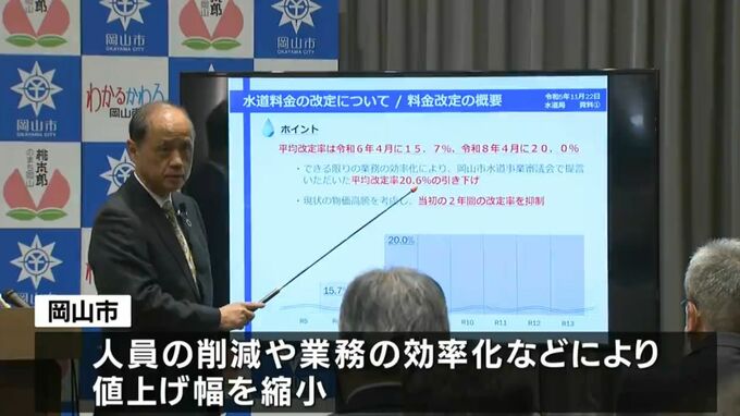 一方で、物価高騰による市民負担の軽減を目的に、岡山市では、人員の削減や業務の効率化などにより値上げ率を縮小、