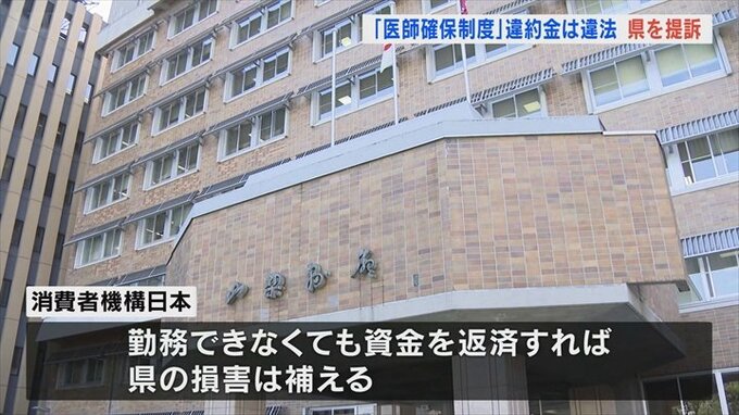 県内で医師として一定期間働くことを条件に修学資金の返済を免除する山梨県の制度に高額な違約金を定めているのは違法として、東京都の団体が違約金の条項の差し止めを求める訴えを甲府地裁に起こしました。