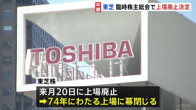 経営の混乱が続く東芝は臨時の株主総会を開き、株式の非上場化に向けた議案が承認されました。東芝は、74年にわたる上場企業としての歴史に幕を下ろすことになります。中継です。日本の高度経済成長を牽引してきた…