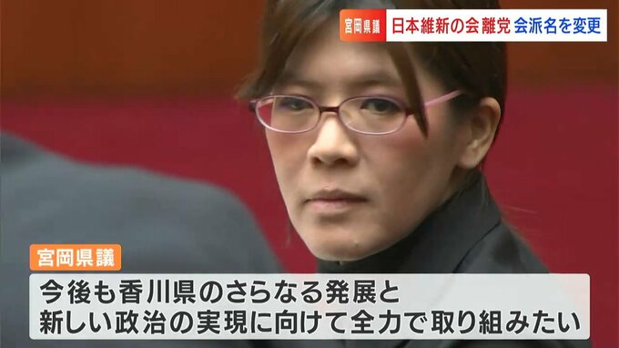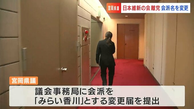 日本維新の会を11月14日に離党した香川県議会議員の宮岡陽子氏はきょう(22日)、香川県議会で自身が所属する会派を「維新みんなの会」から「みらい香川」に変更する届けを出しました。