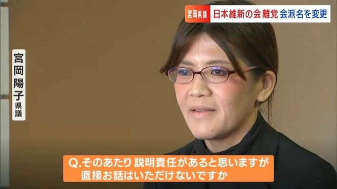 「今回維新を出られて、今議会に参加された訳じゃないですか。そのあたり説明責任があると思いますが、直接お話はいただけないですか」