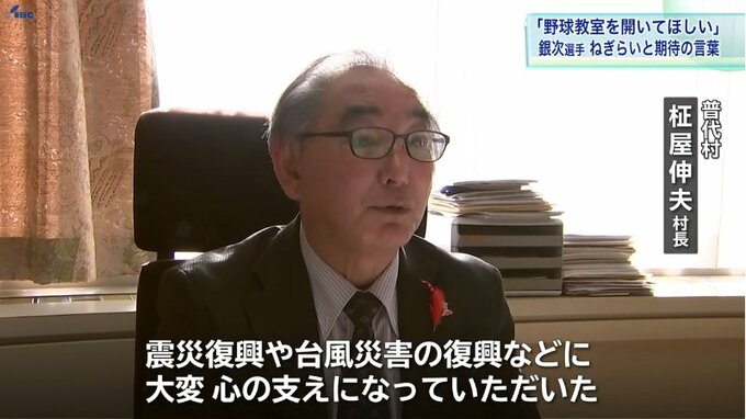 普代村の柾屋伸夫村長は助役時代に銀次選手の地元後援会を立ち上げ、会長を務めました。