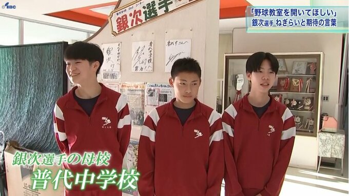 銀次選手の母校・普代中学校では後輩の野球部員から来訪を願う声も。