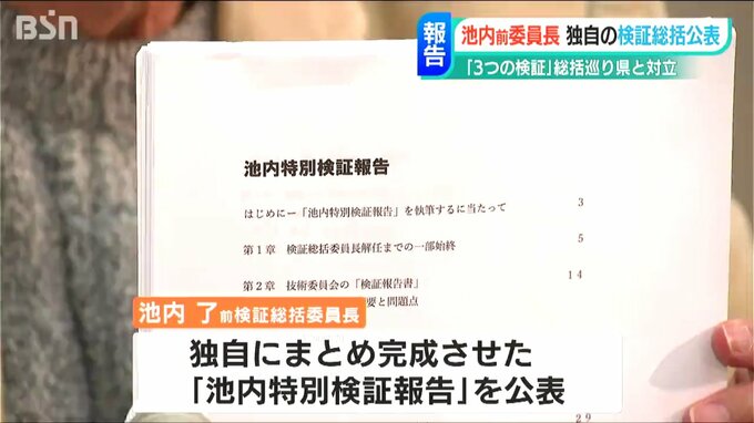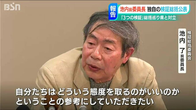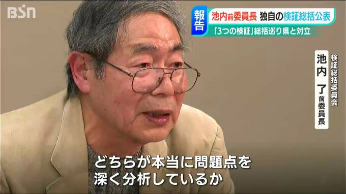 【検証総括委員会 池内了 前委員長】「県が出した(検証)総括報告書を見比べていただいて、どちらが本当に問題点を深く分析しているか、どういう判断をすべきかということは私はおのずから分かってくると思います」