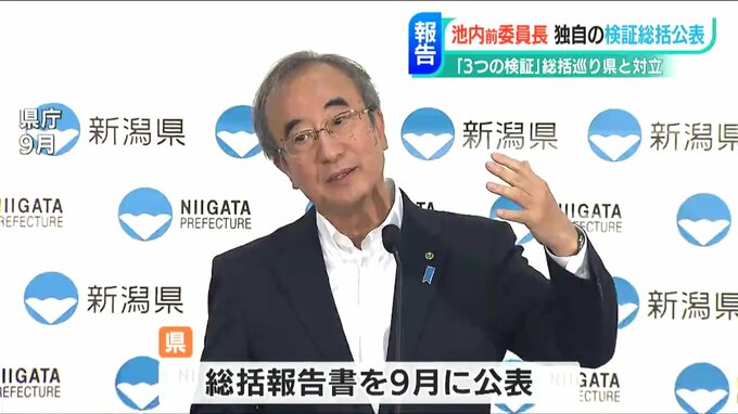【池内 前委員長】「検証総括の問題点、それから原発を進めていくうえでの問題点、それを県民のみなさんがよく考えた上で柏崎刈羽原発に関して自分たちはどういう態度をとるのがいいのかということの参考にしていただきたい」