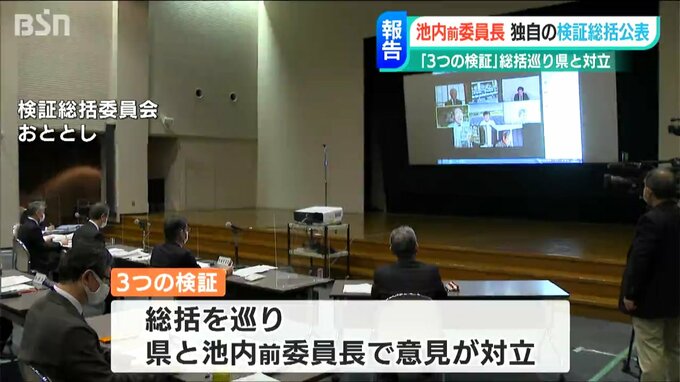 福島第一原発事故に関する県独自の「3つの検証」の総括を巡っては、県と池内前委員長との間で意見が対立。