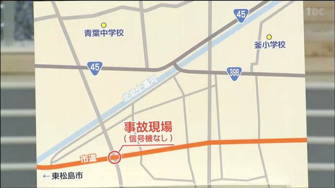 事故現場から1キロほど離れた場所には小中学校があり、事故が起きた交差点を通って通学している児童と生徒もいます。また、国道と平行するように道路が整備されていますが、信号機がほとんどないため、この道路を通って東松島市方面に向かう車が多いということです。