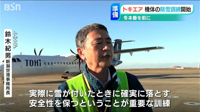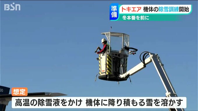 就航のめどを示していない新潟空港拠点の地域航空会社「トキエア」が本格的な冬の時期を前に22日から、機体の除雪作業の訓練を始めました。