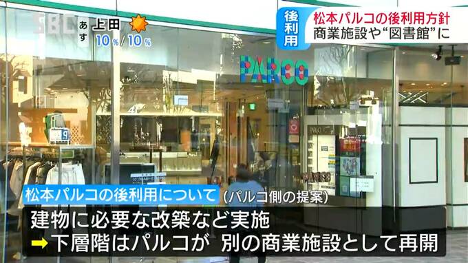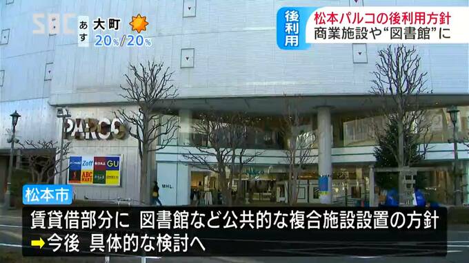 2025年に閉店する松本パルコの後利用について、下の階は商業施設として、上の階は図書館などの公共施設として活用する検討が進んでいることがわかりました。