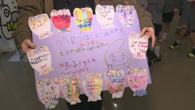 メロン幼稚園では勤労感謝の日に合わせて感謝の気持ちを伝えようと地域の企業を訪問していて、22日は「取材に来てくれてありがとう」といったメッセージと花束を手渡してくれました。