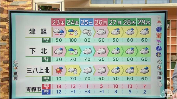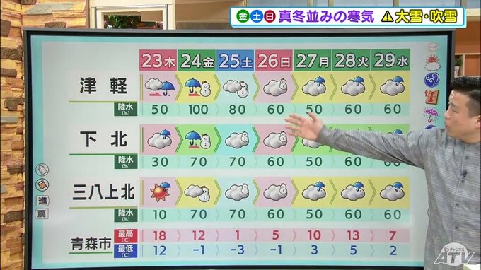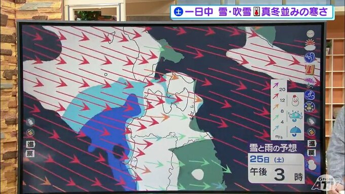 今週末の24日~26日は青森県内も天気が大きく崩れそうです。真冬並みの寒気・今季初の冬将軍も到来し、平地でも大雪吹雪のおそれがあるようです。以下、気象予報士・吉田篤さんの解説です。