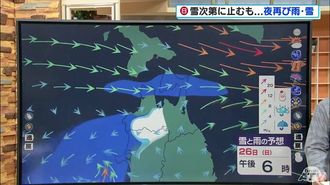 さらに日曜日ですが、その雪が午前中を中心に続きます。お昼頃になるとおさまるんですが日曜日の午後になってきますと今度は低気圧による崩れで湿った雪とか冷たい雨が降ってくるという状況になっています。