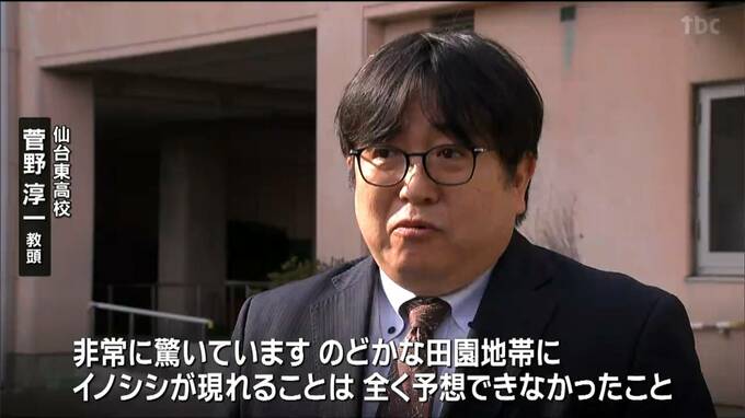警察によりますと、23日午前8時半頃、仙台市若林区下飯田の仙台東高校で、イノシシが学校の敷地内にいるのを野球の試合を見学していた複数の保護者が目撃しました。